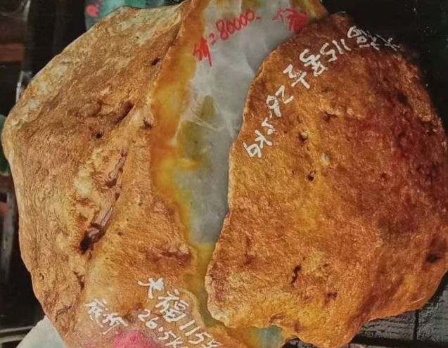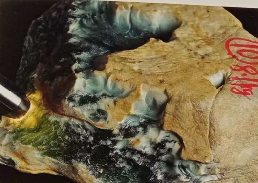 赌石中,只要看到薄皮的细白泥砂皮不可轻易放过。