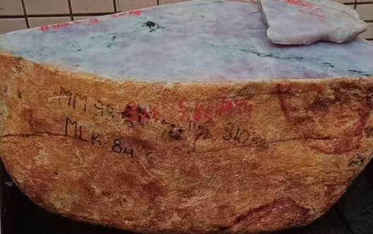 水石的砂皮已被磨蚀殆尽不存在,或仅剩雾,有些仅剩玉肉。
