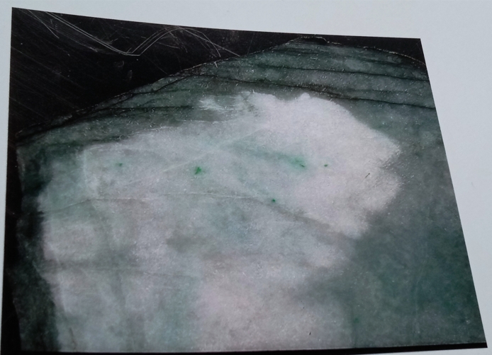 图11 翡翠的白雾,紧贴皮壳,其界限比较明显